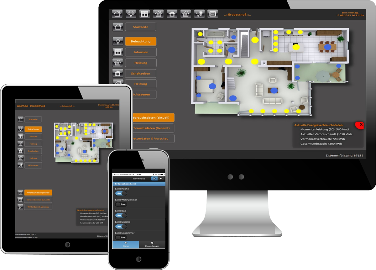 Kombiniert mit einer Visualisierung steht einer einfach von überall zu bedienenden, energieeffizienten und bestmöglich automatisierten Steuerung nichts mehr im Weg.